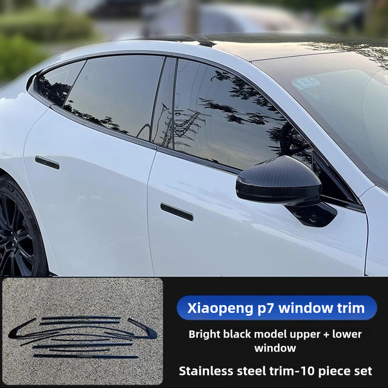 For XPeng P7 P7i 2022-25 10pcs Stainless steel black Exterior Window Molding Strip Sill side Cover Trim Accessories
